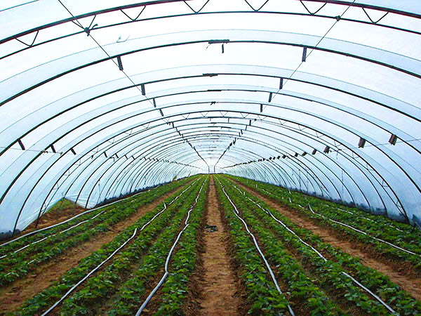 前坡面夜間用保溫被覆蓋,東、西、北三面為圍護墻體的單坡面塑料溫室,統稱為日光溫室。其雛型是單坡面玻璃溫室,前坡面透光覆蓋材料用塑料膜代替玻璃即演化為早期的日光溫室。日光溫室的特點是保溫好、投資低、節(jié)約能源,非常適合我國經濟欠發(fā)達農村使用。